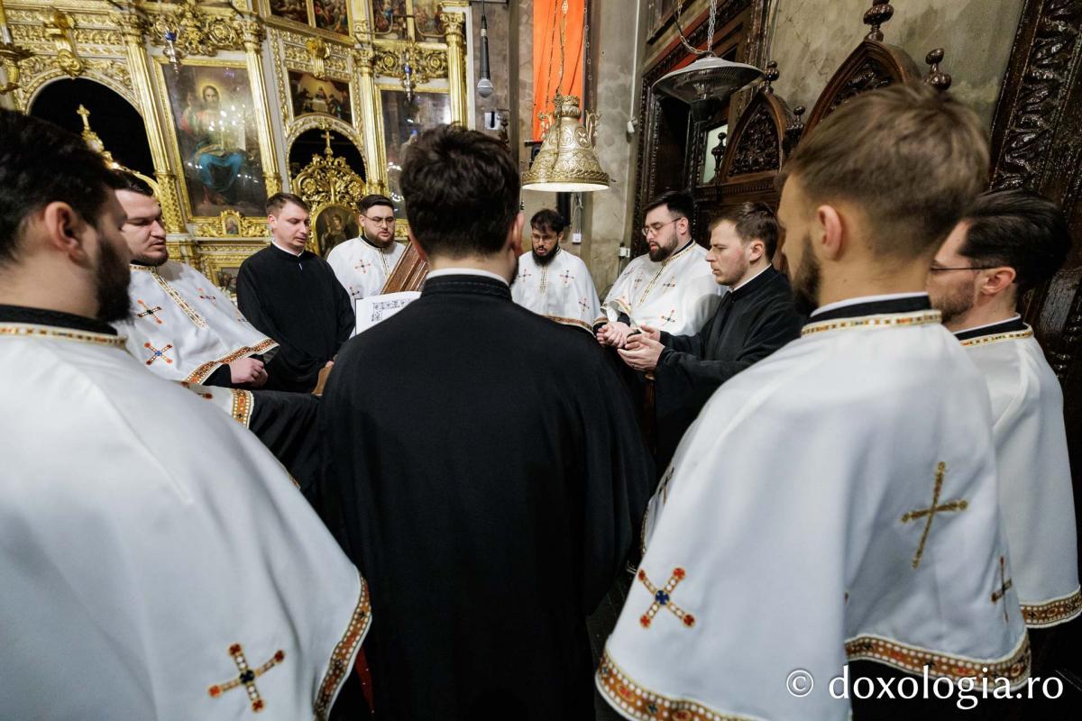 Răspunsurile la strană au fost date de Corul Chivotul „Chivotul” al Catedralei Mitropolitane și, respectiv, de Corul „Basileus” al Seminarului Teologic Ortodox „Sfântul Vasile Cel Mare” din Iași.